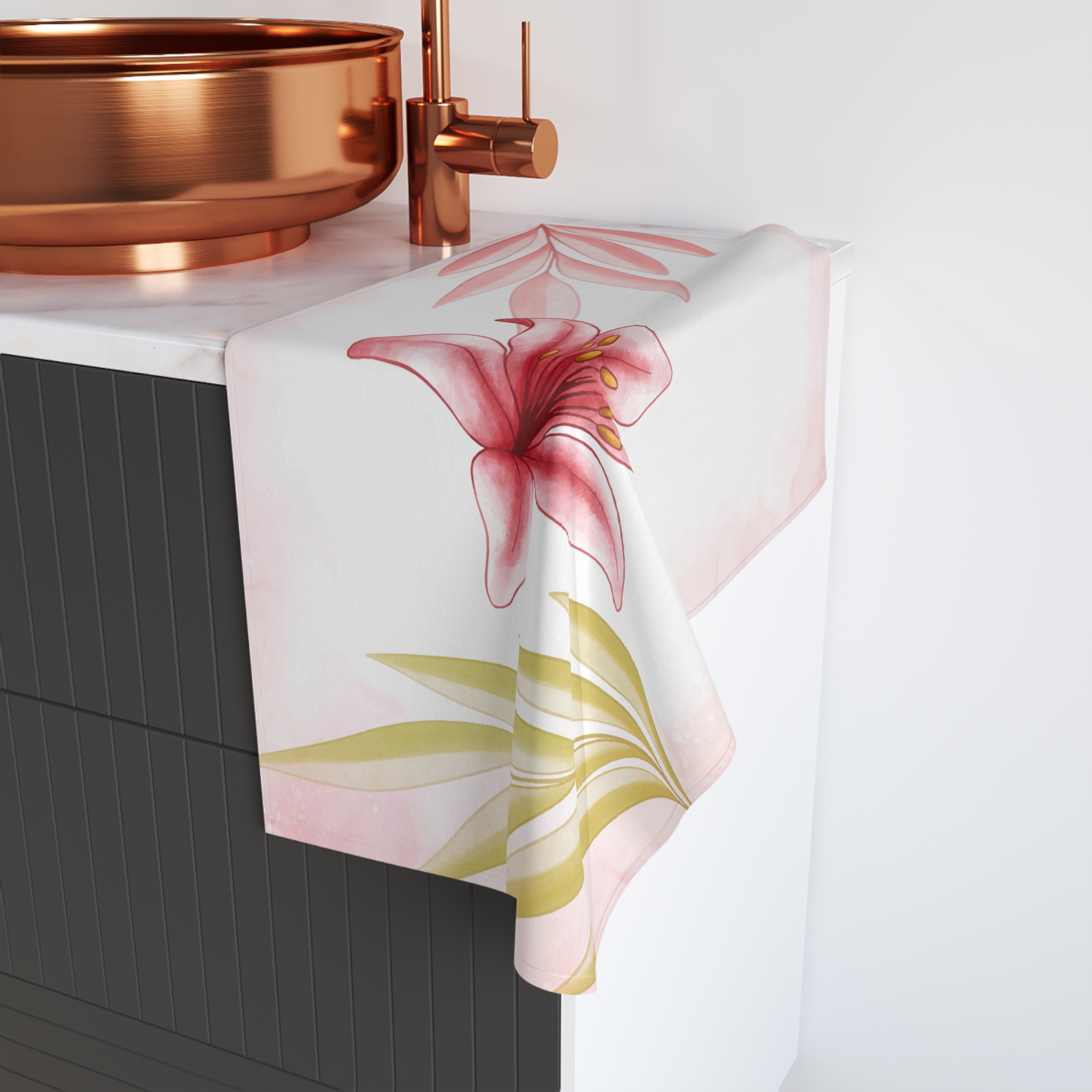 Floral Pink Bath Mat - Elegant Bathroom Decor with Lily Design