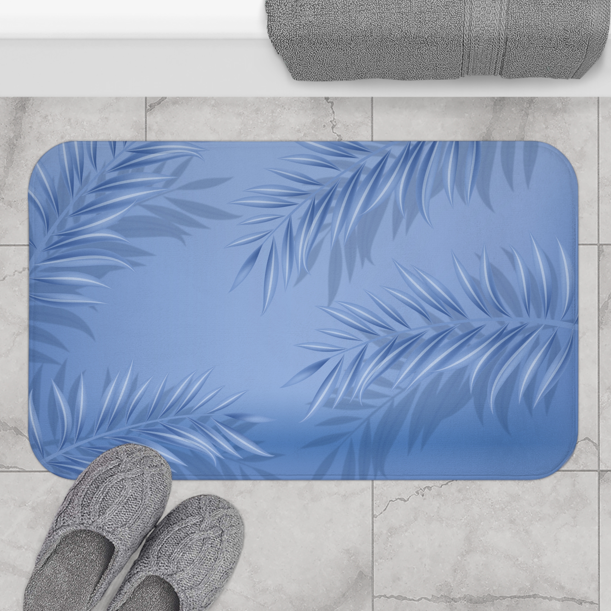 Tropical Palm Leaves Bath Mat for a Relaxing Spa Experience