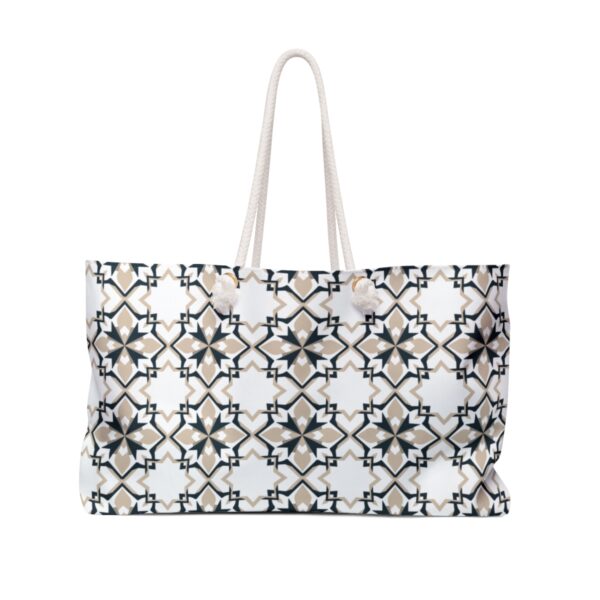 Elevate your travel essentials with our Arabic Square Mosaic Pattern Weekender Bag. Featuring a sophisticated Arabic square mosaic pattern, this weekender bag merges traditional design with contemporary style, making it the perfect accessory for any trip.