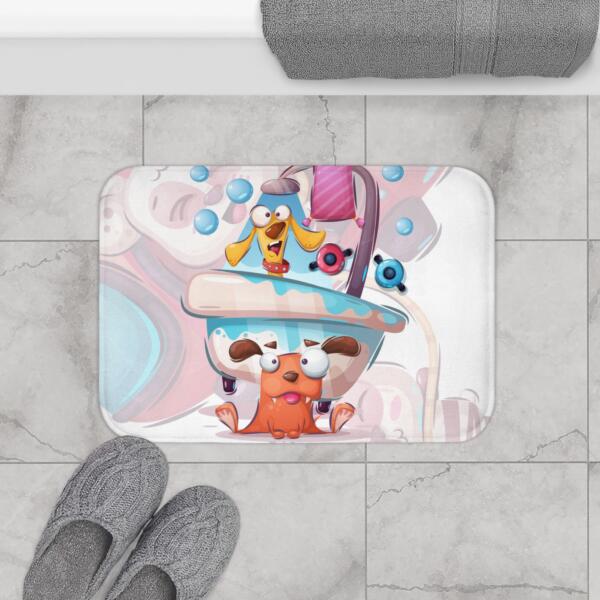 5. Perfect for Kids’ Bathrooms: This bath mat is specially designed to complement the fun and vibrant themes in children’s bathrooms. The cute dog design adds a playful touch, making it an ideal match for animal-themed decor or any kid-friendly bathroom.