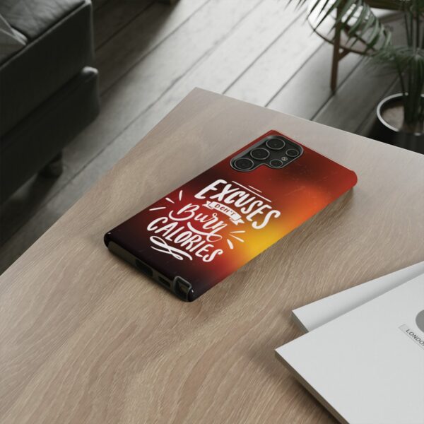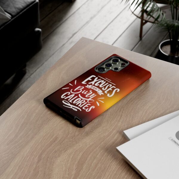 Stay motivated and protect your phone with our Excuses Don’t Burn Calories Tough Phone Cases! Perfect for fitness enthusiasts who believe in pushing their limits, these cases combine inspirational design with top-notch protection. Every glance at your phone will remind you to keep going, no excuses!