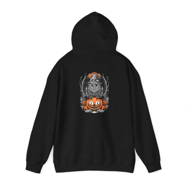 - Eerie Owl and Pumpkin Design: The sweatshirt showcases a hauntingly beautiful graphic of a spooky owl and a Halloween pumpkin, capturing the essence of the season with intricate, eye-catching details. It’s a standout piece that adds a touch of frightful fun to your Halloween wardrobe.