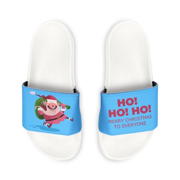 Embrace the holiday spirit with our vibrant “Ho! Ho! Ho!” graphic. These sandals are designed to spread joy and cheer, making them a great conversation starter at any Christmas event.