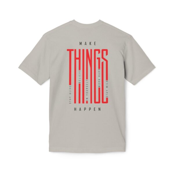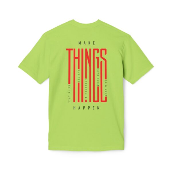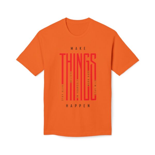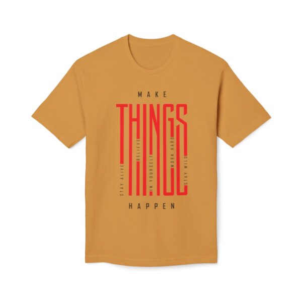 Motivate yourself and others with our “Make Things Happen” Light Color Unisex Midweight T-Shirt. Designed for both men and women, this eco-friendly t-shirt combines an inspiring message with sustainable materials, ensuring you can make a positive impact while staying comfortable and stylish.