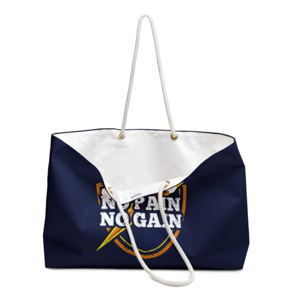 Showcase your commitment to fitness with the No Pain No Gain Weekender Bag. The bold, motivational design not only looks great but also keeps you inspired and focused on your goals.