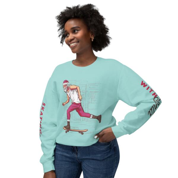 Skating Santa Unisex Lightweight Crewneck Sweatshirt: