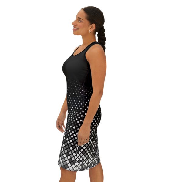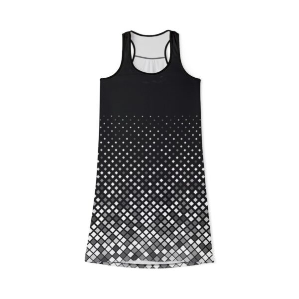 Embrace elegance and comfort with our Square Pattern Black Women’s Racerback Dress. Perfect for any occasion, this dress combines modern design with classic style to create a versatile wardrobe staple.