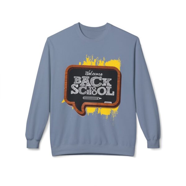 Welcome Back to School on Wooden Unisex Midweight Soft Style Fleece Crewneck Sweatshirt